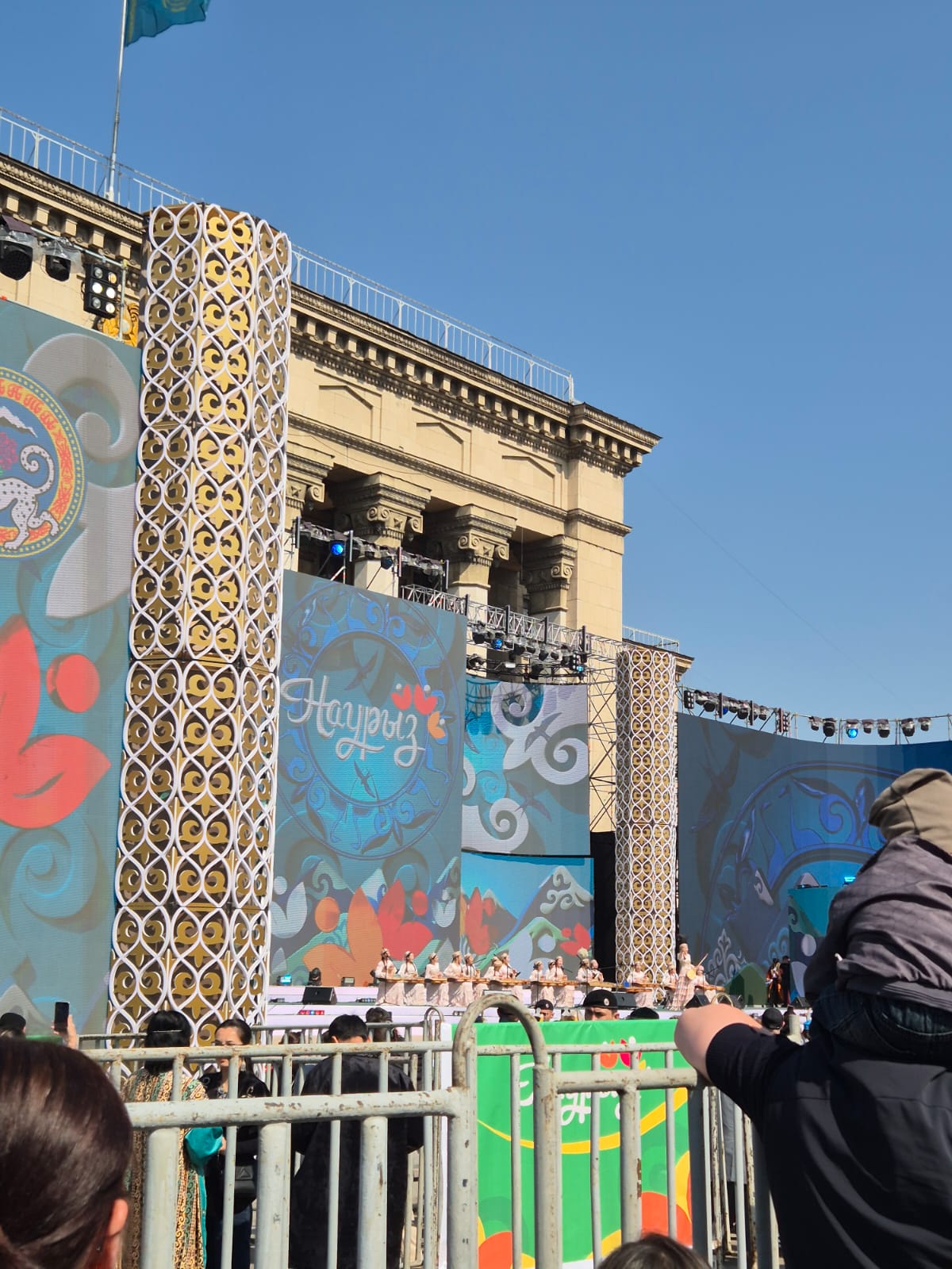 Я, как активная гражданка, посетила эти празднования. Тем более, что погода позволяет гулять целый день. И гуляя дальше уже по своим делам, пошла на звук каких-то знакомых мелодий. Это оказалось выступление казахского ансамбля, исполняющего современные попсовые хиты на национальных казахских инструментах. Играли хиты Sean Paul, Sia, Pharrell Williams и другие. Звучит потрясающе! Настроение +100!