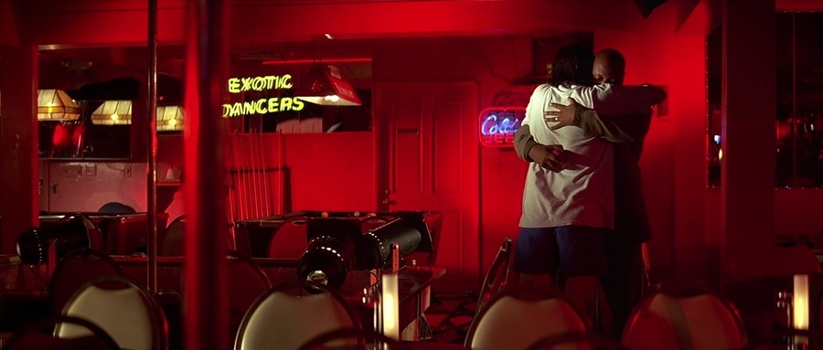 Далее Винсент Вега идёт к Марселласу, обнимается с ним, а на их дружеские объятия смотрит боксёр, которому нужно "лечь" за деньги.