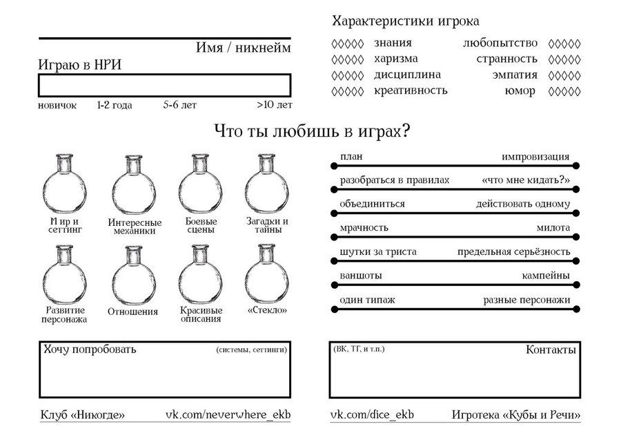 Ну и не забывайте, уважаемый мастера, что мы создаем свои миры не только для себя, но и для игроков, а потому перед подготовкой к играм и созданием мира можете дать своим игрокам вот такую анкету, тогда у вас будет на что ориентироваться.