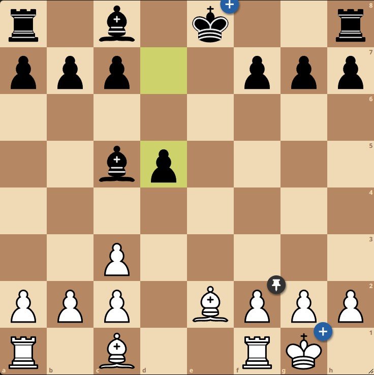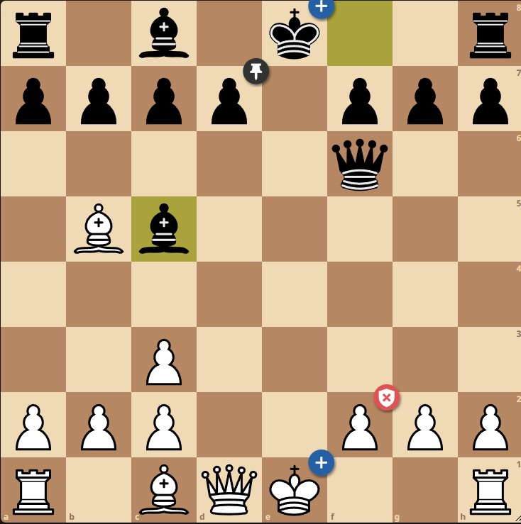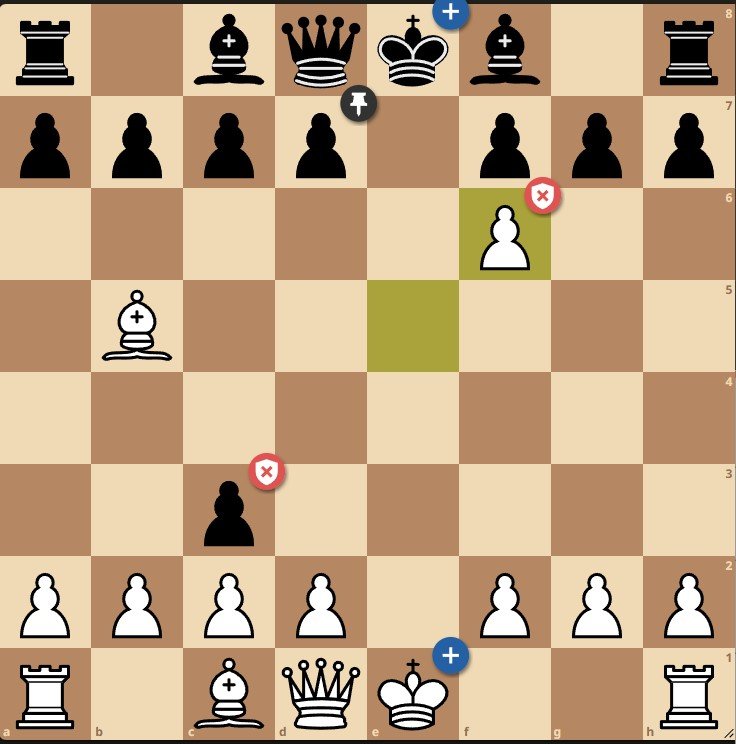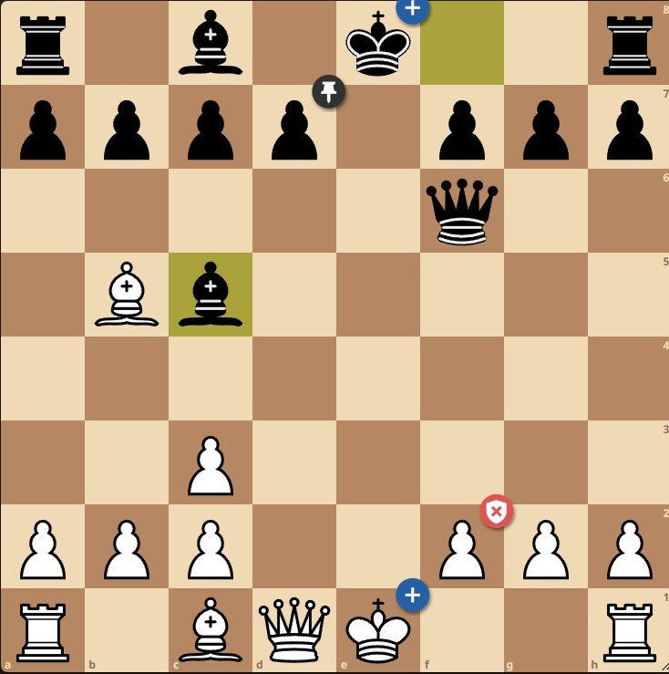 В данной позиции он создает угрозу мата в один ход, которая, правда, легко отражается: 9. Qe2+ Qe6 10. O-O Qxe2 11. Bxe2 d5