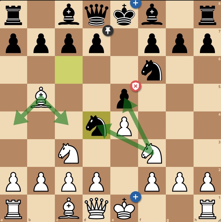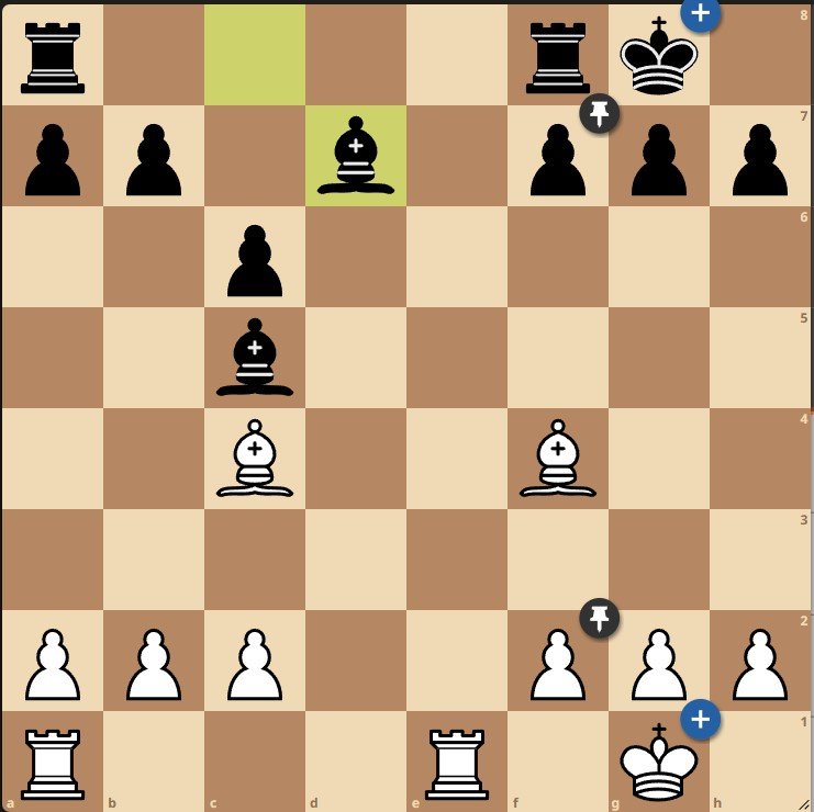 В этой позиции основными вариантами является отход слоном, а взятие висящей пешки приводит к ухудшению позиции белых, однако у них есть еще один интересный ход, который помогает спокойно перевести партию к ничейному исходу, который и был нужен Жавохиру для уверенной победы на турнире, - размен коней, к нему то и прибегает узбекистанский шахматист.