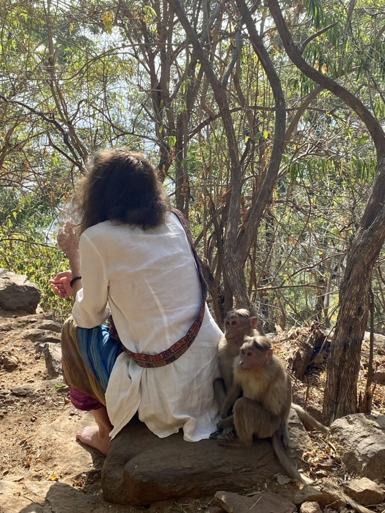 На территории ашрама тихая и спокойная атмосфера умиротворения. Гуляют павлины и обезьяны. Проживание и питание предоставляется бесплатно, но для этого необходимо получить подтверждение, написав, на официальную почту ашрама