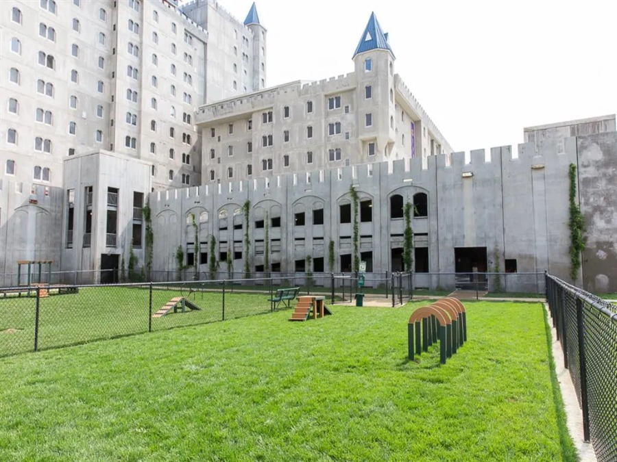 В США в штате Мичиган есть такой городок Гранд-Рапидс. Там один застройщик построил жилой комплекс пол названием Grand Castle, что можно перевести как Большой замок. Это не застройка из 90-х, это современное здание, которое строилось с 2015 по 2018 год. Вид на "замок" с просмотра улиц гугл карт: