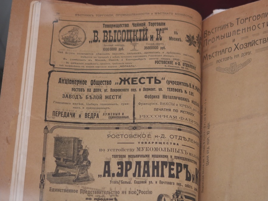 До революций 1917 года Ростов-на-Дону был богатым и экономически активным городом. Объявления из "Вестника торговли, промышленности и местного хозяйства".