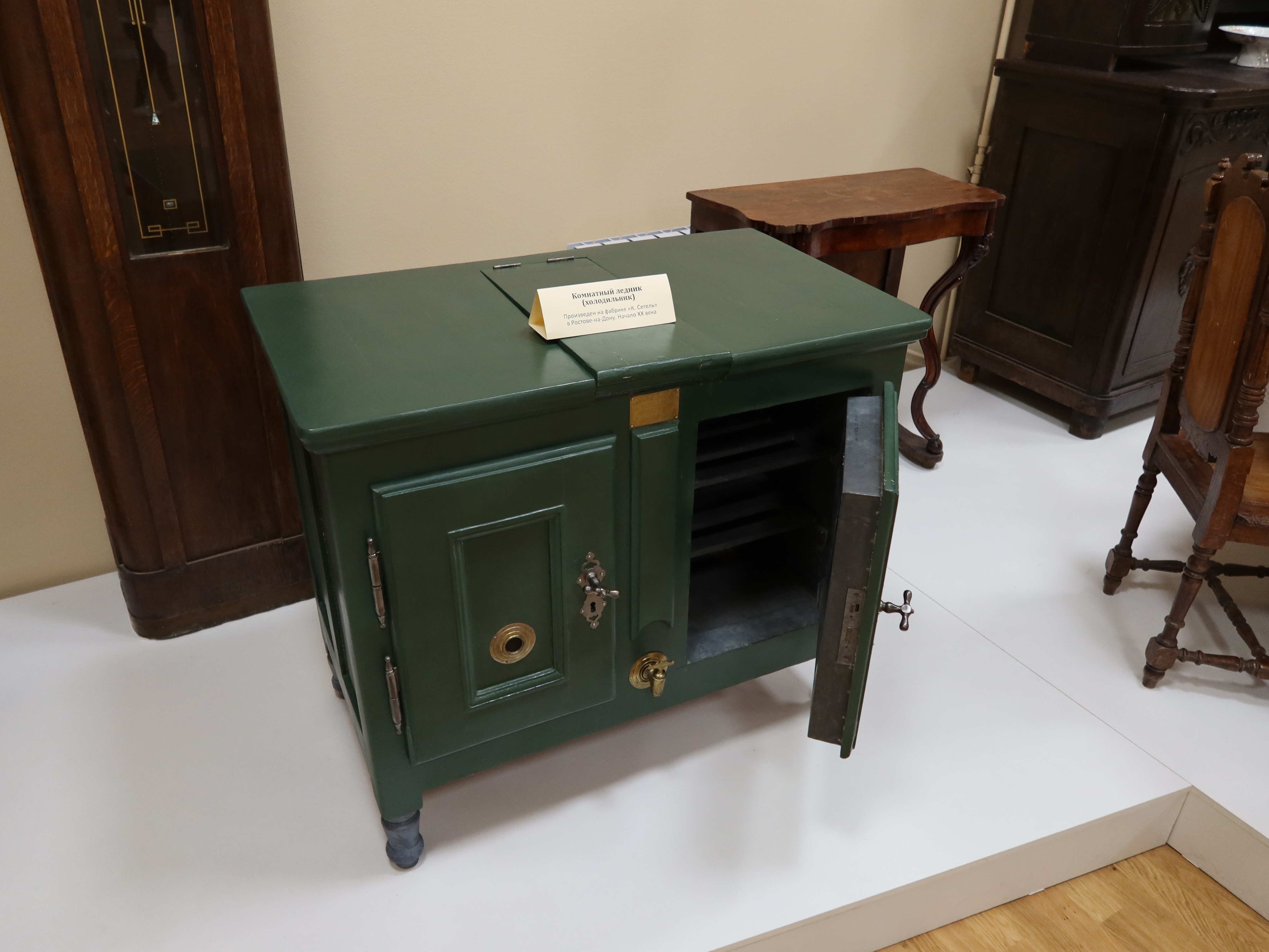 Комнатный ледник (холодильник). Произведён на фабрике "К. Сегель" в Ростове-на-Дону в начале 20 века. На этом холодильнике даже написан четырёхзначный номер телефона - 16-68.