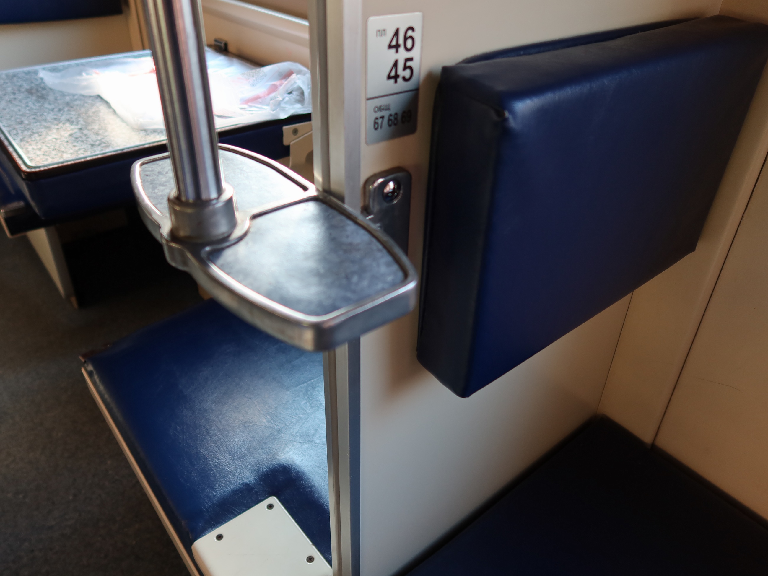 Самое худшее - это удобство, вернее его отсутствие для высокого и габаритного пассажира как я. Сидеть внизу на сиденьях боковушки катастрофически неудобно. Во-первых, в левую ногу впивается держатель столика и всё время сильно давит.