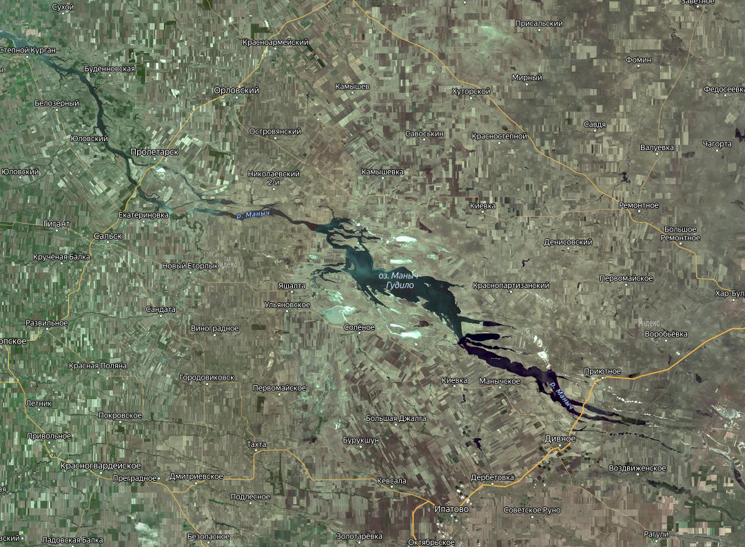 В Ростовской области недалеко от Калмыкии есть большое солёное озеро Маныч-Гудило.