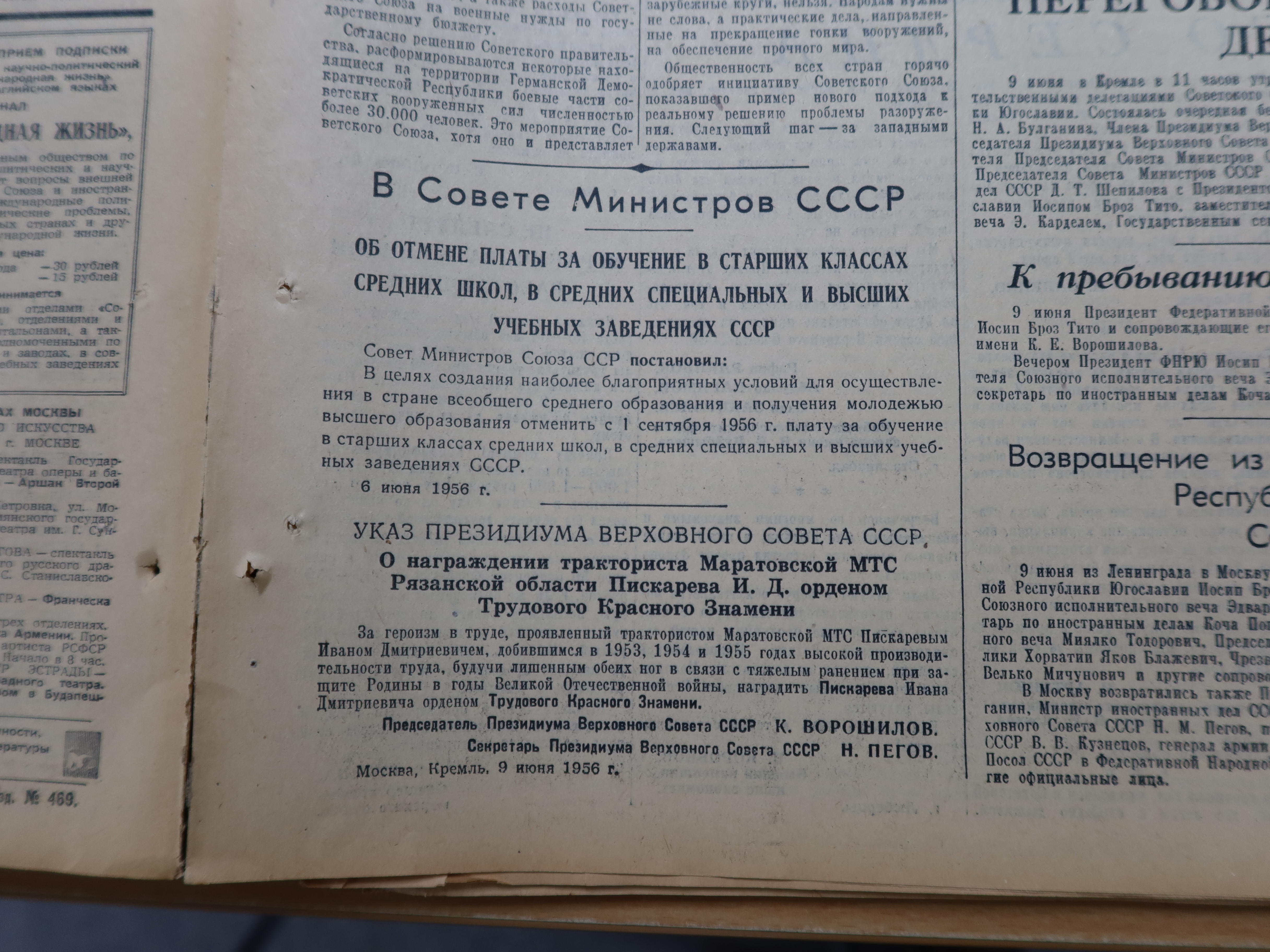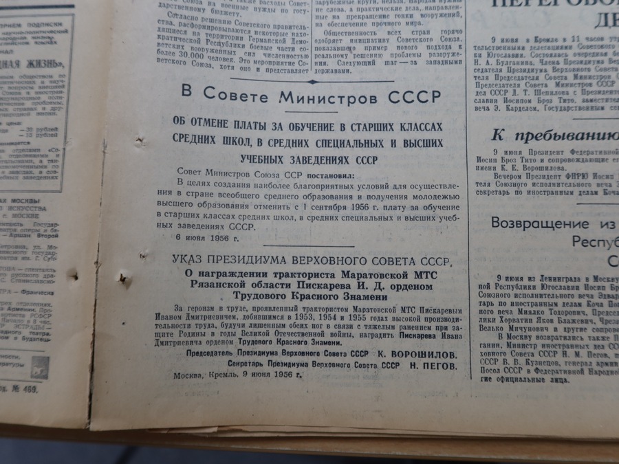 Зато удалось получить оригинал газеты Правда №162 от 10 июня 1956 года, где как раз было напечатано постановление от 6 июня.