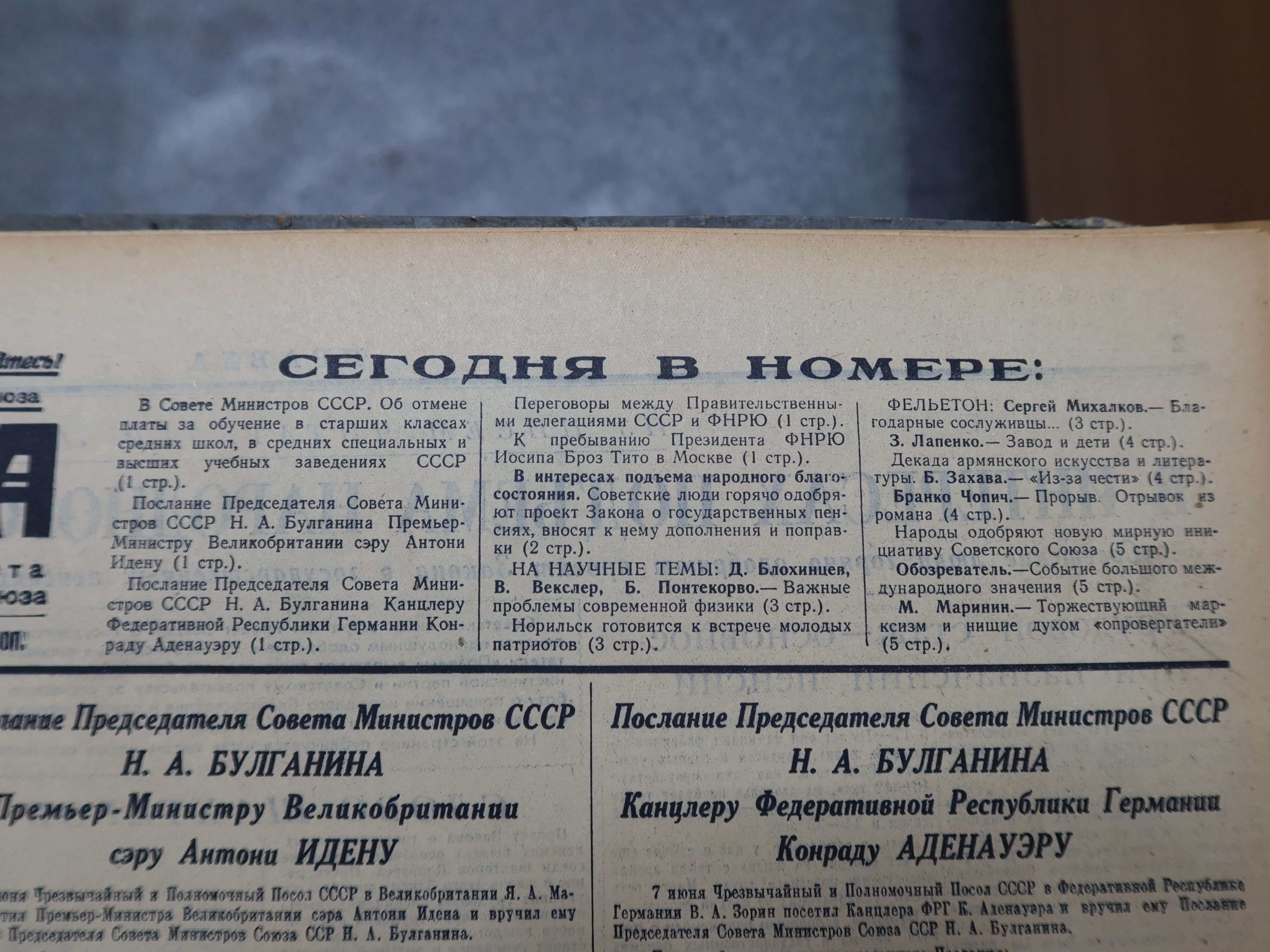 Новость об отмене платы за образование была настолько важной, что её поместили в самый верх на первое место в раздел "Сегодня в номере":