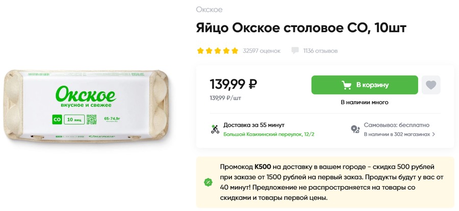 Десяток яиц, Окское столовое СО в Перекрёстке.