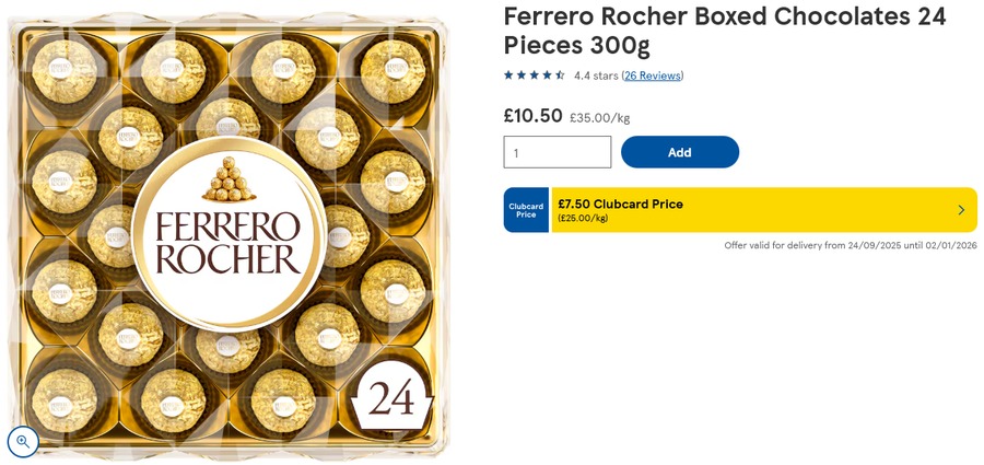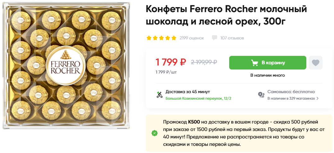 Коробка шоколада Ferrero Rocher, 24 конфеты, всего 300 грамм. Его для сравнения я взял, потому что в России тоже продаётся.