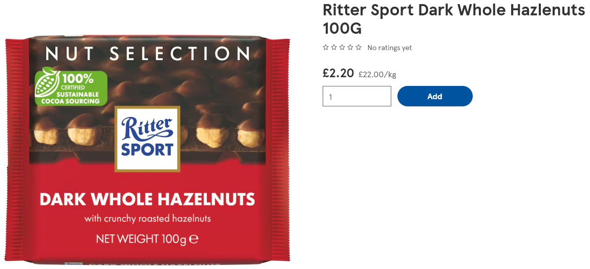 В Теско он £0.99 за килограмм, это 104,63 рубля за кило.