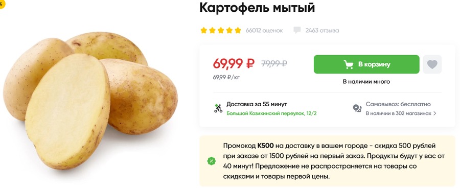 В Перекрёстке примерно аналогичная картошка 69 рублей, т.е. немного дешевле.