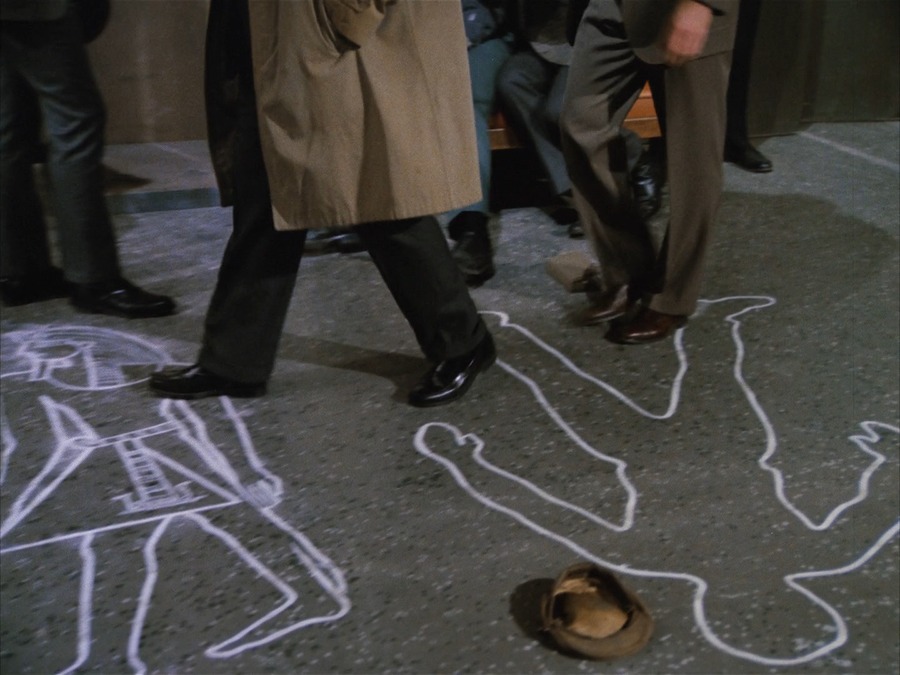 На полу - нарисованные мелом забавные контуры тел убитых.