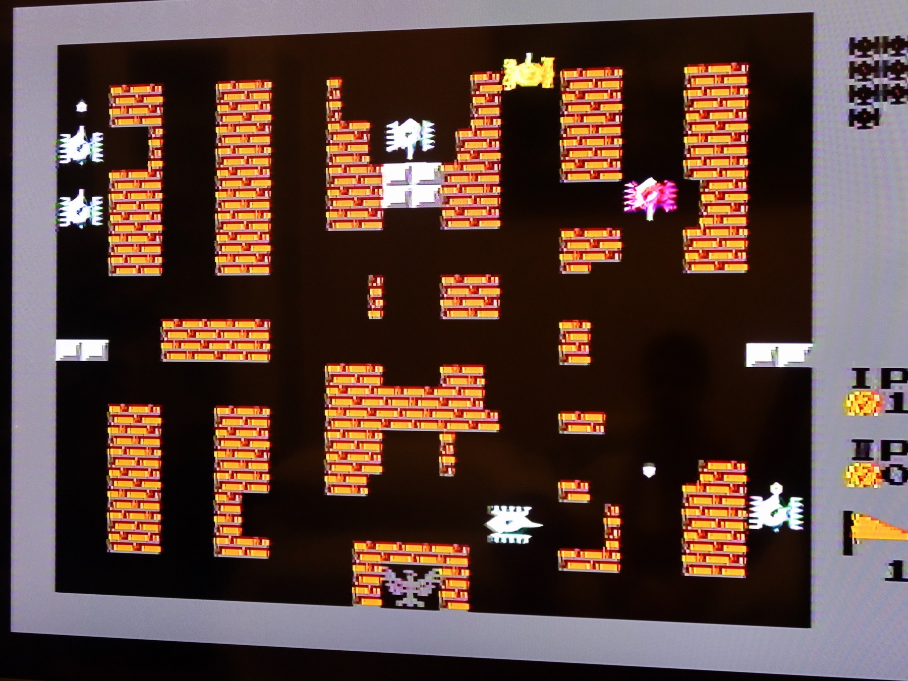 Всё заработало как надо, денди через конвертер выдавала изображение без багов. Замечу - на огромном экране играть было странновато, слишком всё крупное. Поиграл с дочкой в Battle City.