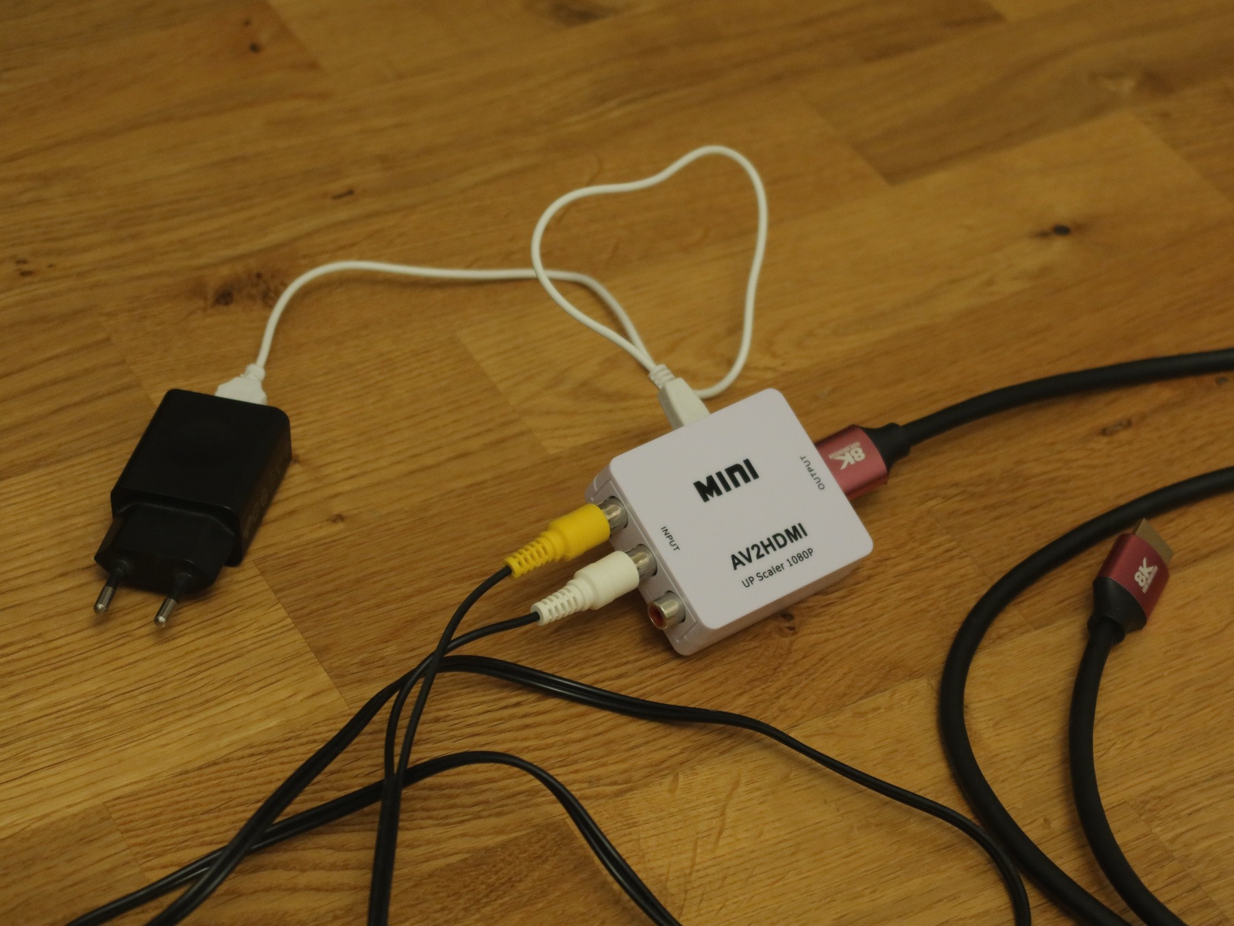 Чтобы подключить эту приставку к ТВ, пришлось купить переходник AV-HDMI. Вернее, это преобразователь, ведь сигналы несовместимы: там аналоговый, а у HDMI цифра. Поэтому в переходнике находится маленький компьютер, который конвертирует аналоговые аудио/видео в цифровой поток. Соответственно ему нужно отдельное питание - питается от USB.