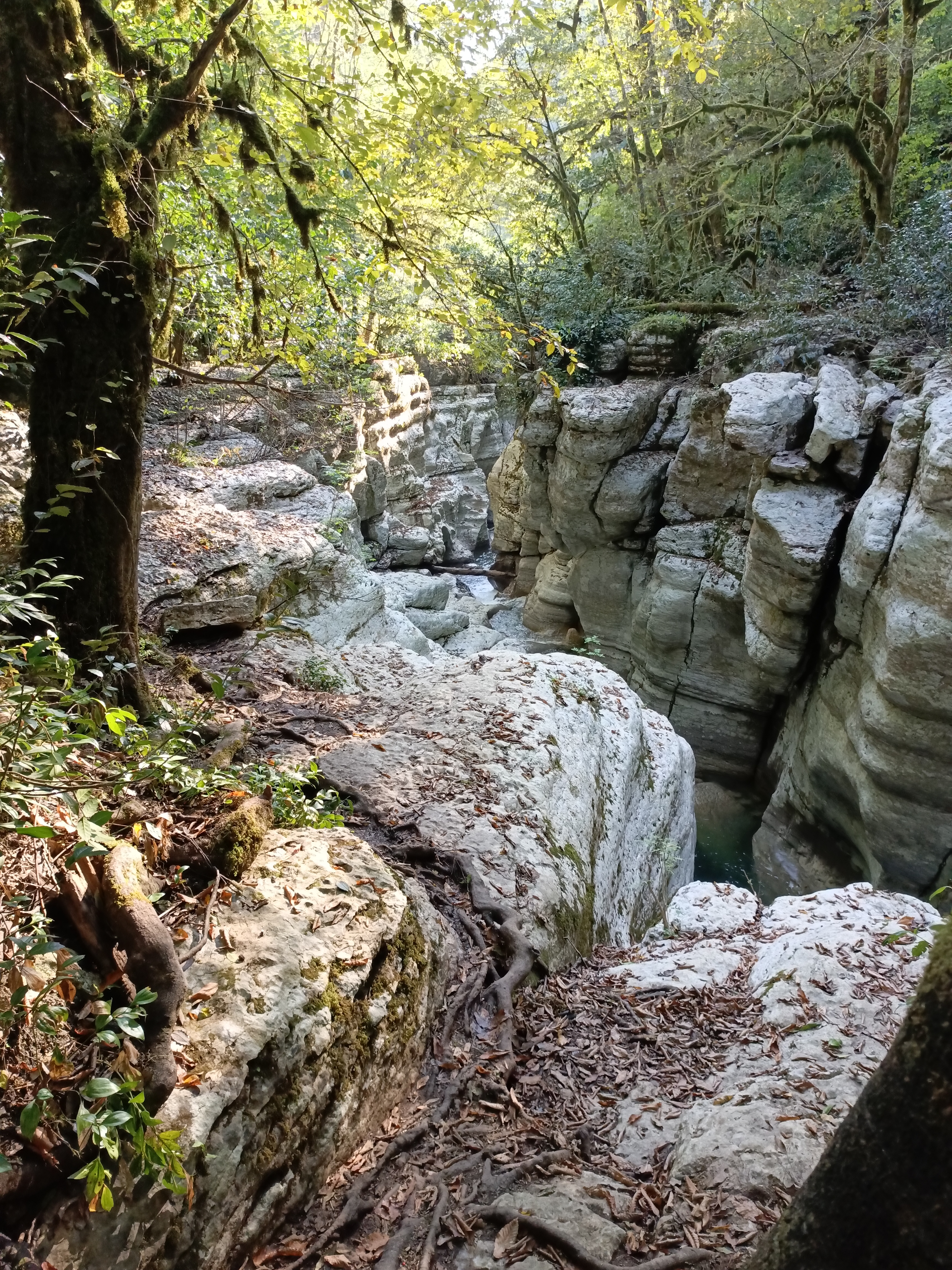 В 2024 году отпуск у меня выдался поздний, в октябре, и дабы отвлечься от серой осени средней полосы мы с супругой отправились в Сочи. Да, кости на пляже уже не погреешь, но мы больше за активный отдых. Поэтому в один из дней отправились в каньон Белые скалы. Уже больно заманчивыми оказались фотографии в интернете.