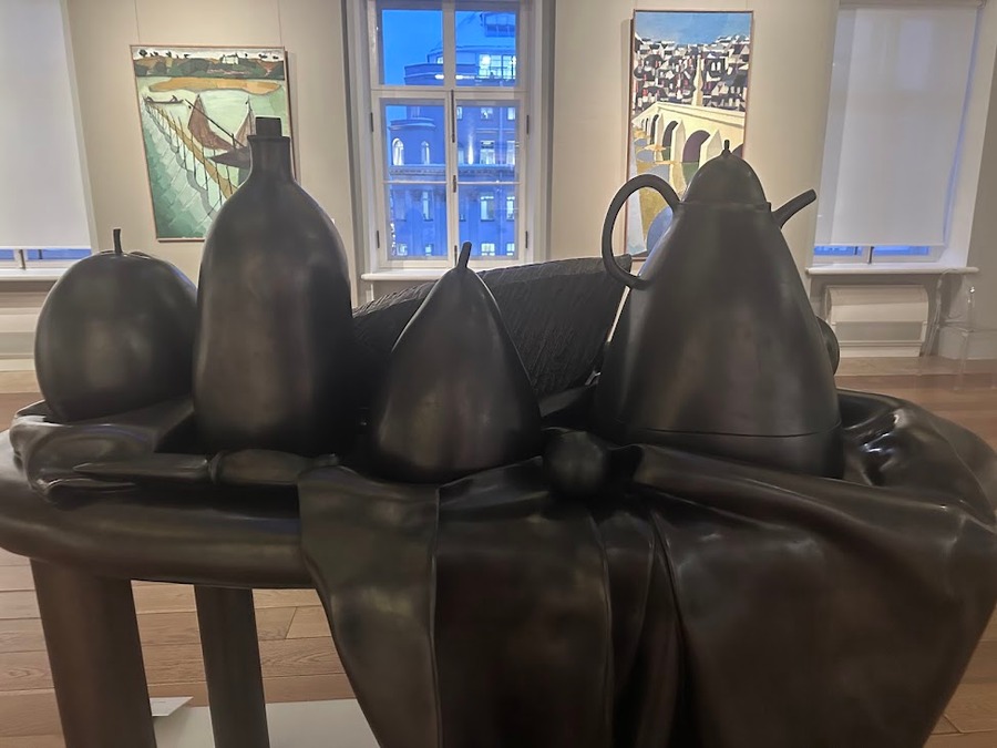 Холодно. Я как всегда в центре города. Это повод забежать в главный штаб обогреться, и зарядится позитивом. Поднимаюсь на любимый четвертый этаж и от «Арабской кофейни» Матисса перемещаюсь к скульптурному натюрморту Фернандо Ботеро. Кофейник, бутылка вина, груша и яблоко заряженные колумбийским солнцем. Маэстро колумбийский художник и скульптор 20 и 21 век: 1932-2023. Он заядлый путешественник. Ботеро можно назвать ваятелем мира, потому что его работы есть в любой стране земного шара. Художник создал свой неповторимый стиль: «Объём как отражение значимости земного». Причем совершенно случайно.