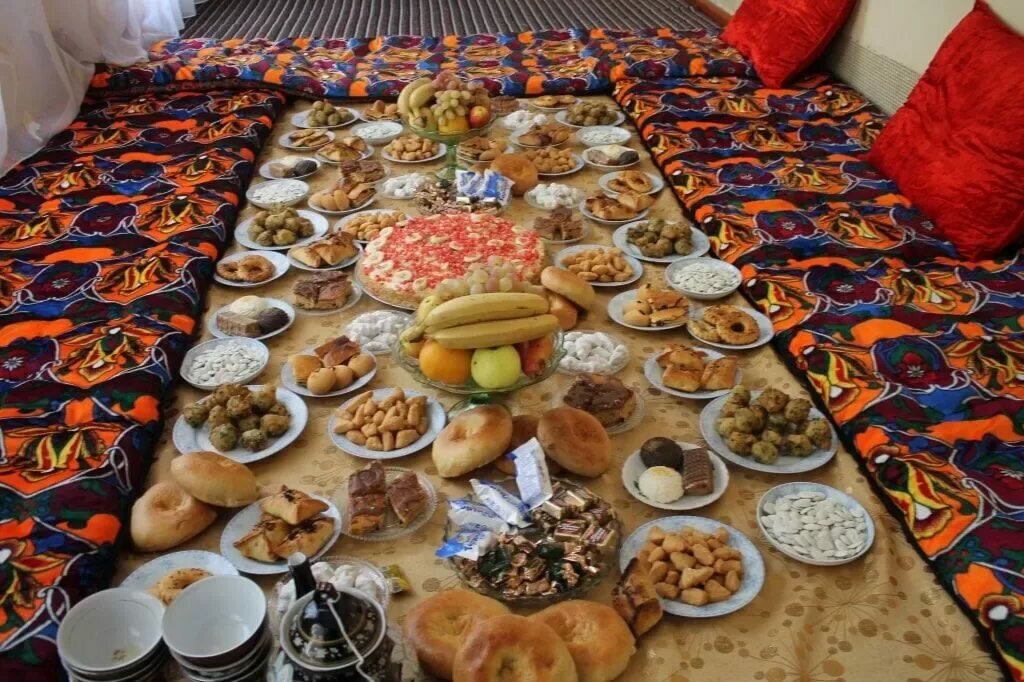 Интересной особенностью считается, что гостей усаживают по старшинству и отдают почётные уважаемым гостям. Если на празник собирается много гостей, то женщин и мужчин расскаживают по отдельности.