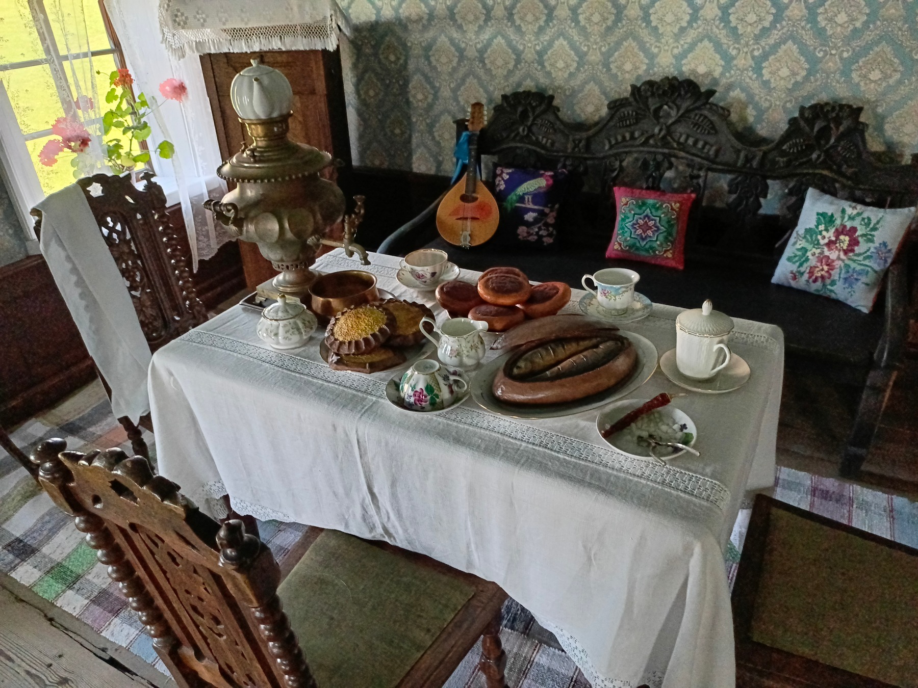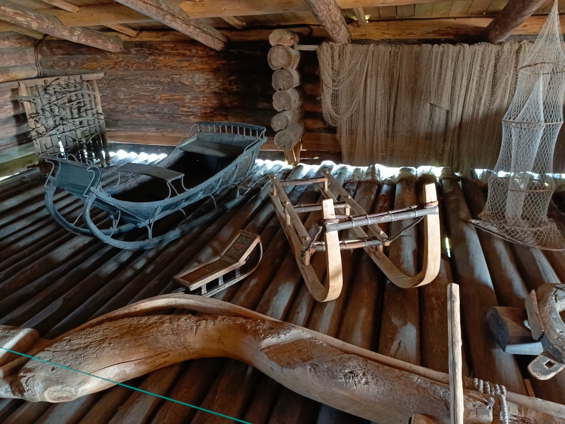 В некоторых домах развёрнуты настоящие музеи, позволяющие проникнуться бытом карелов. Что меня действительно удивило — деревянные щепки в деревянном дому, которые зажигались и служили источником света в тёмное время суток. Только подумайте поджигать дерево в деревянном доме, чтобы было светло. Внутри вы увидите детские люльки, привязанные к потолку, стол с декоративными яствами, предметы интерьера, одежды и многое другое.