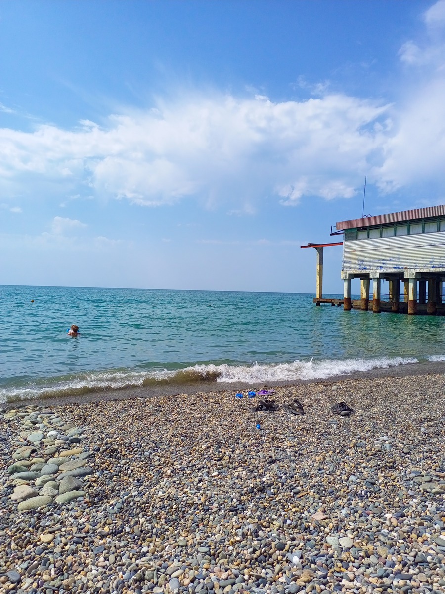 И вот пришёл тот день, когда жена говорит: «Пойдём загорать». Ну а я что? Пойдем. Как это побывать на море, не позагорать и не покупаться. Долго выбирали место, но нашли. Расстелились. Жара. Море восхитительно лазурного цвета и теплое как парное молоко. Купаемся, загораем, пьём вкусные напитки. Жена с камешками играет. Время идёт.