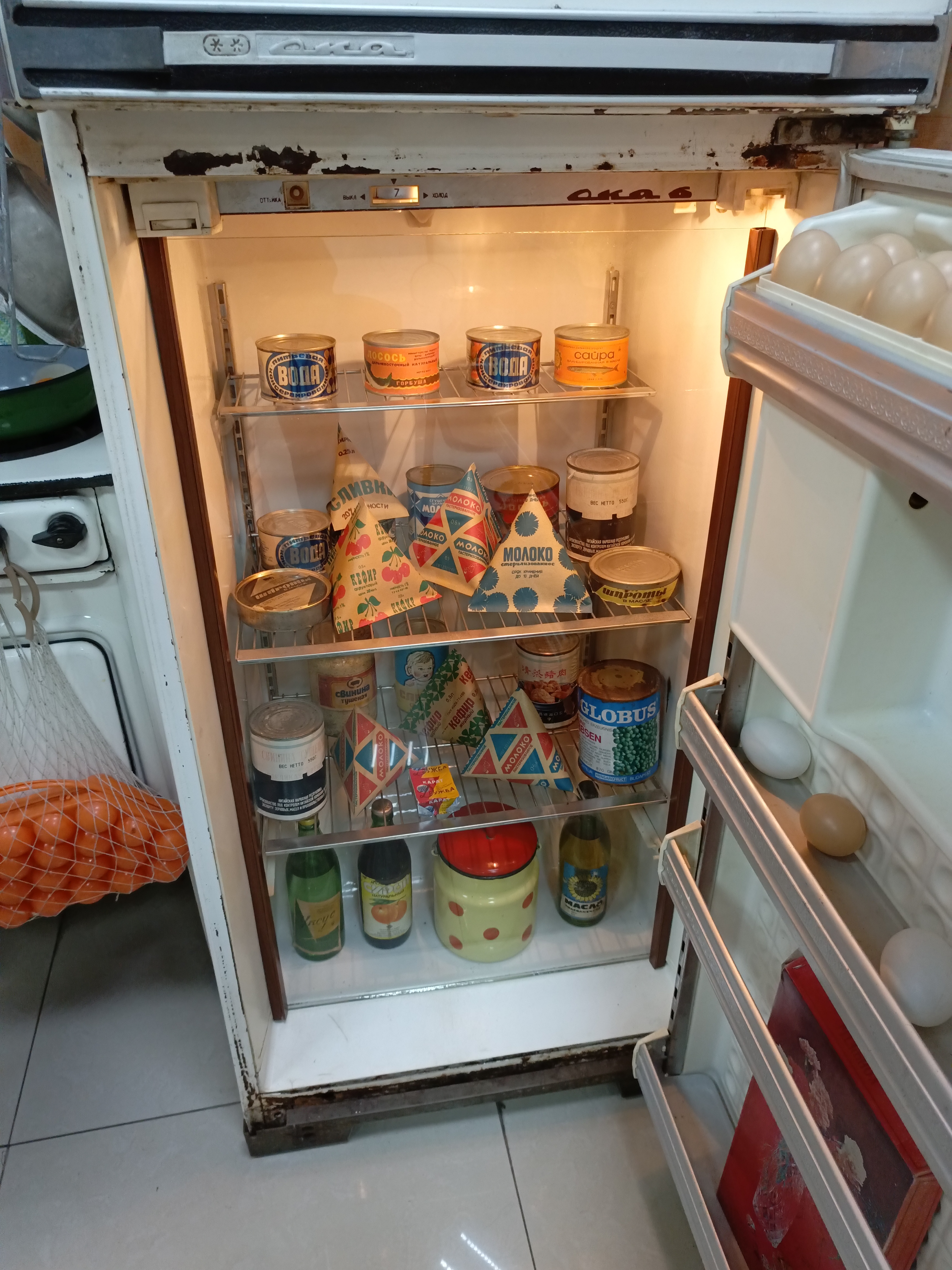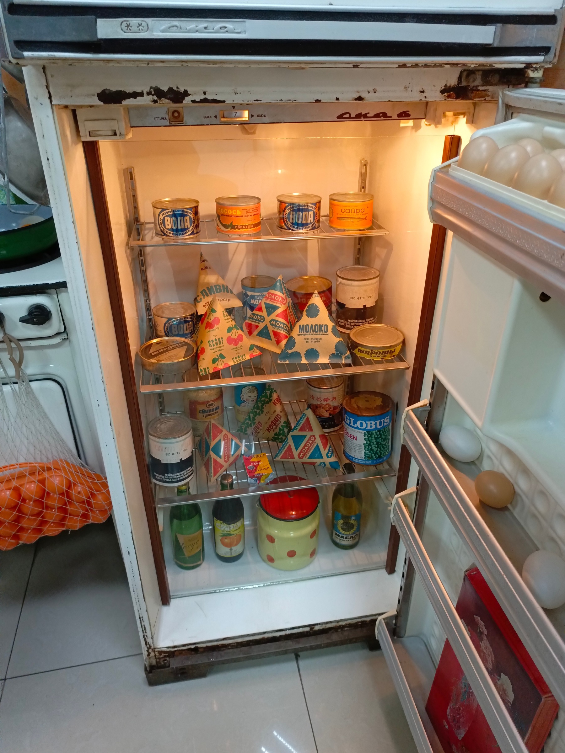 Музей наполнен просто невероятным количеством экспонатов той эпохи. Игрушки, электроника, одежда, предметы интерьера и быта, мебель — абсолютно всё, чем когда-то пользовались наши родители, бабушки и дедушки. И всё это настоящее, не муляж… За исключением еды, конечно. Хотя банки тушёнки, подозреваю, тоже настоящие.