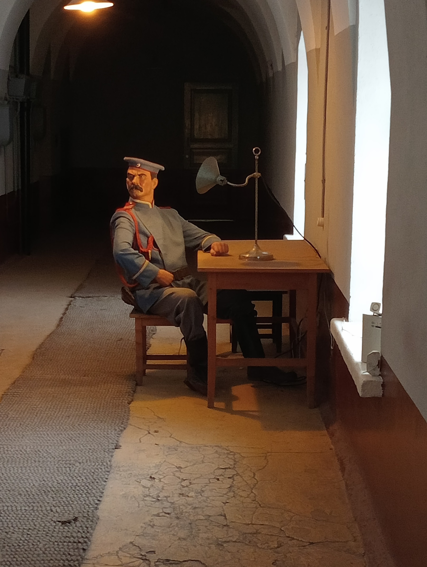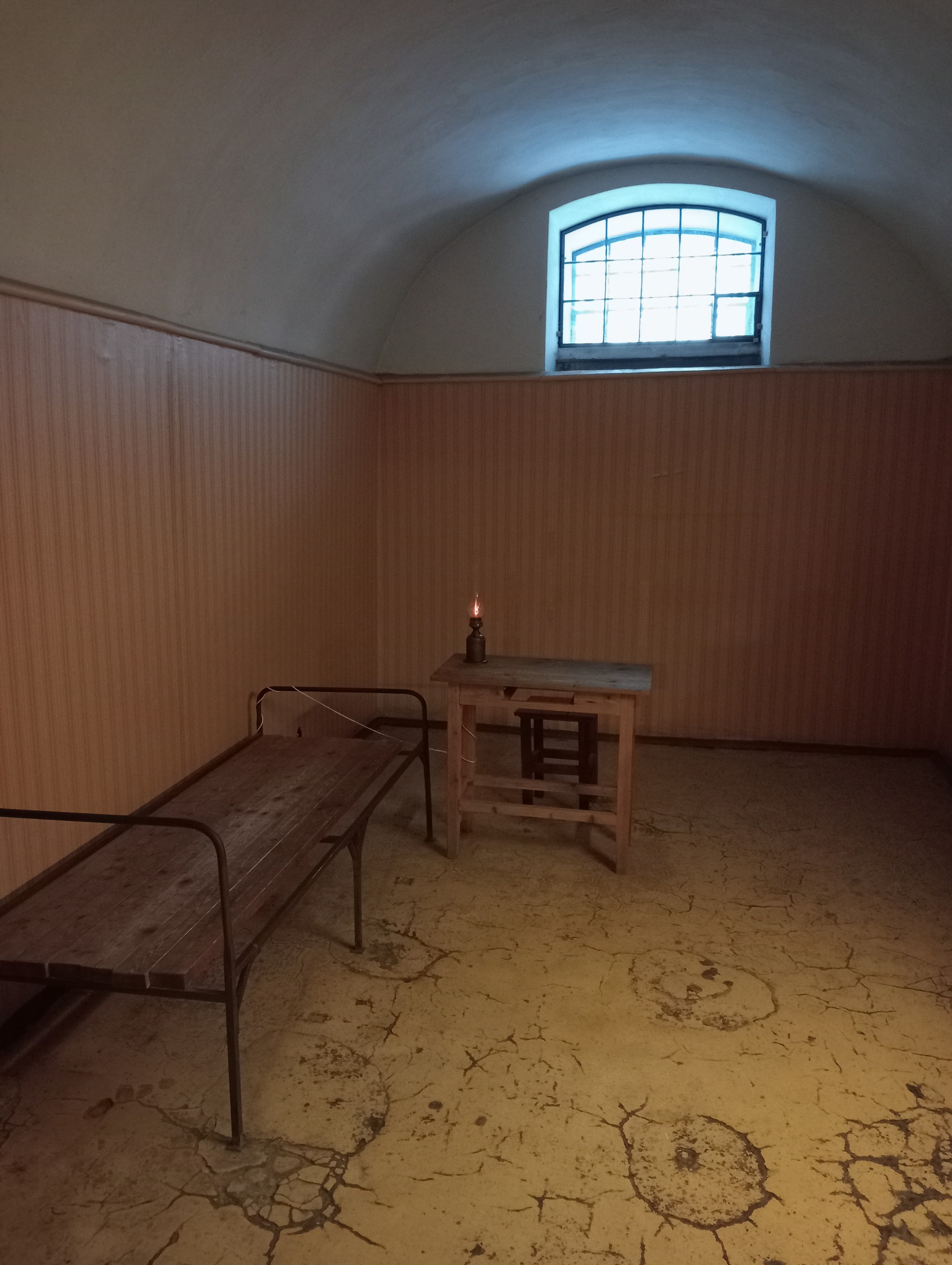 Многие камеры открыты для посещения. Внутри аскетичная кровать, что-то вроде туалета. В некоторых есть стол, на котором можно увидеть книжки и лампадку. Наверное, для привилегированных личностей. В некоторых камерах стоит что-то вроде манекена — доска, на которой изображён заключенный. Таким образом у посетителей появляется понимание, как выглядели люди, которые содержались здесь.
