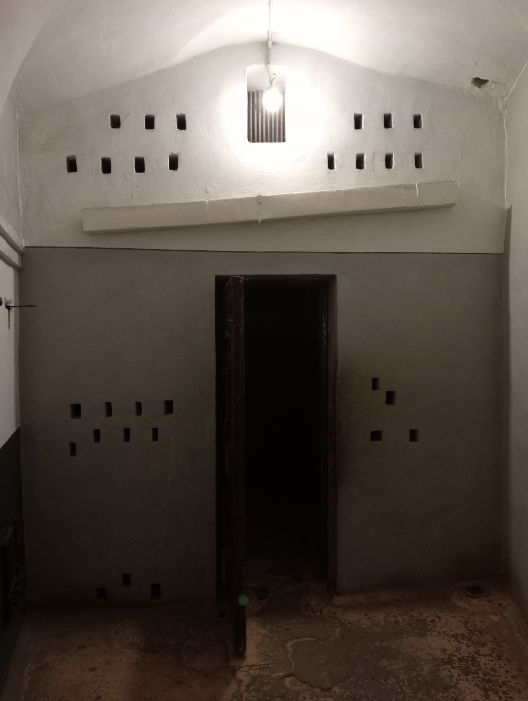 Есть в тюрьме и свой карцер. Когда заходишь в него, остаёшься в полной темноте за плотной дверью. Внутри нарастает тревога, и в какой-то момент ты понимаешь, что хочешь как можно скорее сбежать оттуда, вылететь прямиком на свет. Снять фото внутри не получилось, так как там кромешная тьма, а вот дверь, пожалуйста.