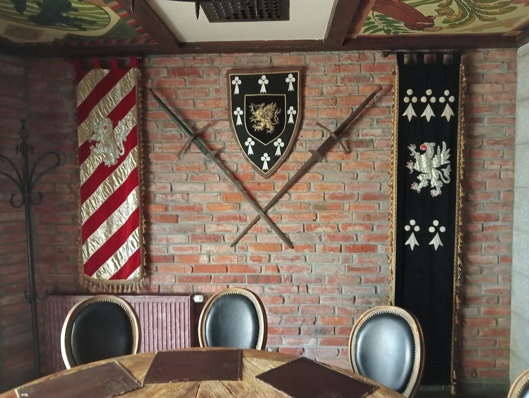 Надо отдать должное дизайнерам и архитекторам. Выглядит всё по-настоящему завораживающе: деревянная мебель, гербы, оружие, доспехи, шкура медведя (не знаю, настоящее или нет) и даже в одном из помещений мы нашли трон, мимо которого пройти не могли и пофотографировались. Заходишь внутрь и словно попадаешь в другое время или параллельную вселенную, где ещё проходят рыцарские турниры, принцессы ждут своих принцев, а в небольших тавернах отработавшие в полях мужики пьют пиво и рассказывают друг другу истории. Некая «Готика» или The Elder Scrolls только наяву (кто-то поймёт, о чём я).