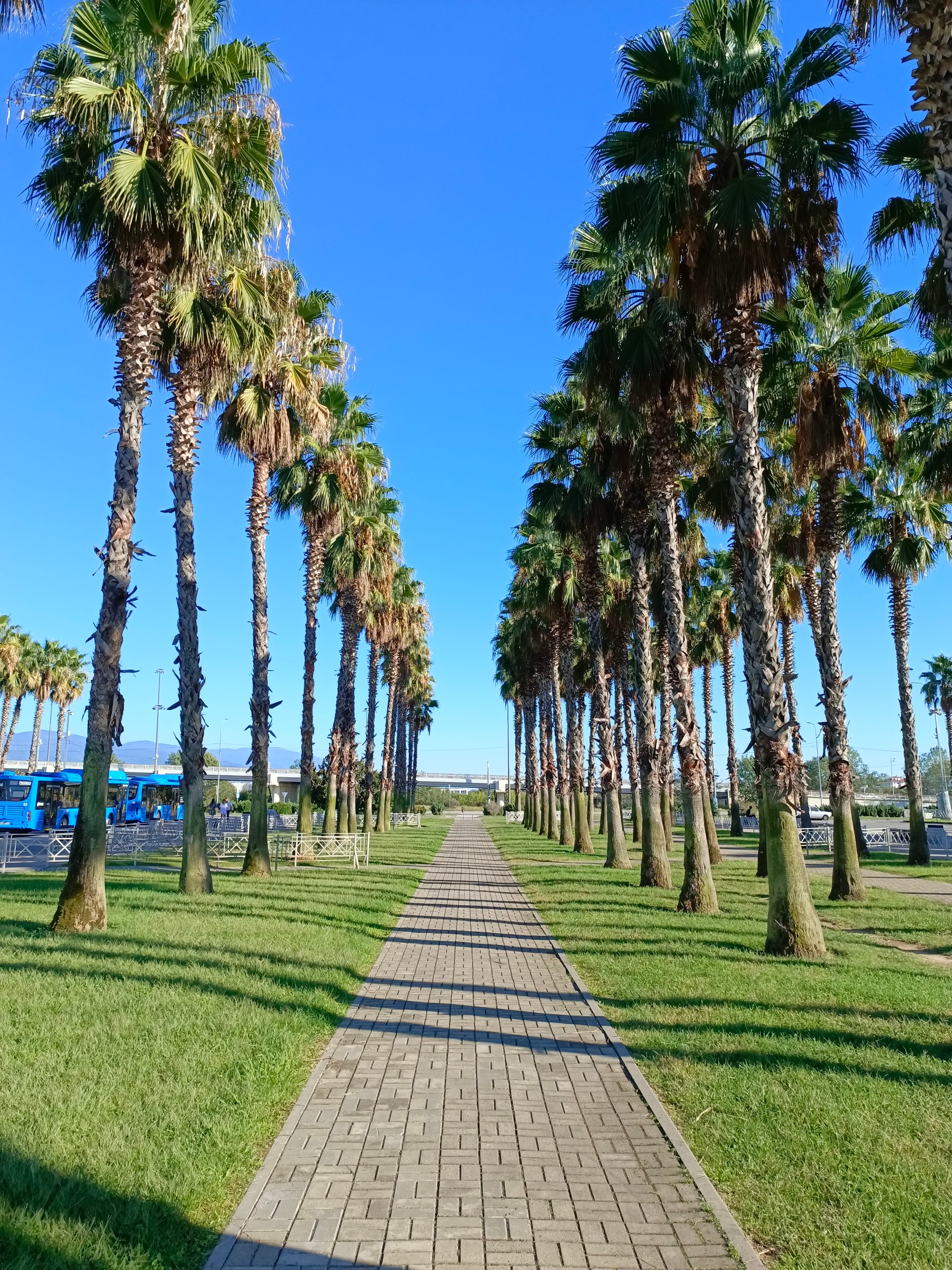 Позировать возле пальмы где-то в городе, может, оно и красиво, и фотография получится неплохой, но лучше всего отправиться к аллее пальм. Она находится в Адлере. Так мы и поступили с супругой. Добраться до этой локации можно на общественном транспорте, а можно на такси — всё зависит от финансовых возможностей и желания.