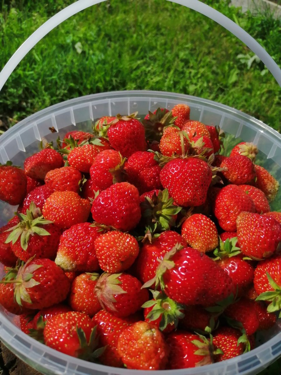 Если соседи по даче спрашивают, как я ухаживаю за клубникой, я отвечаю- почти никак. Весной одна обработка, подсыпка компостом, удаление старых листьев и усов. Лето было жаркое, но клубнику я не поливала. С трех небольших грядок сбор составил 45 литров отборной клубники.
