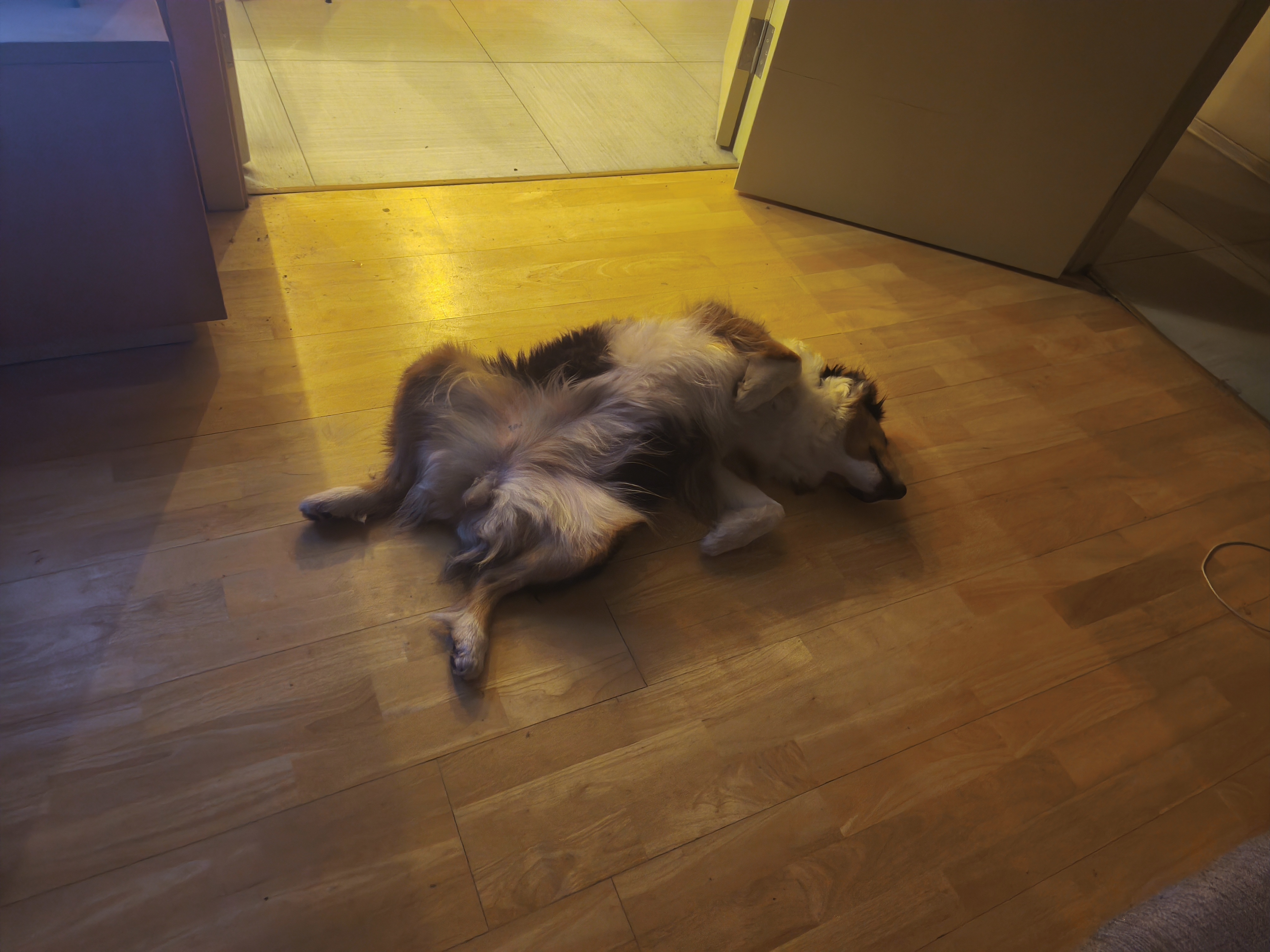 Вначале я удивился, как легко она отпустила хозяина и осталась в незнакомом месте. Правда мы были знакомы и пару раз я с ней играл, но все равно было немного удивительно. Пришлось, конечно поиграть с мячиком и другими игрушками, но в целом вечер был довольно спокойным.