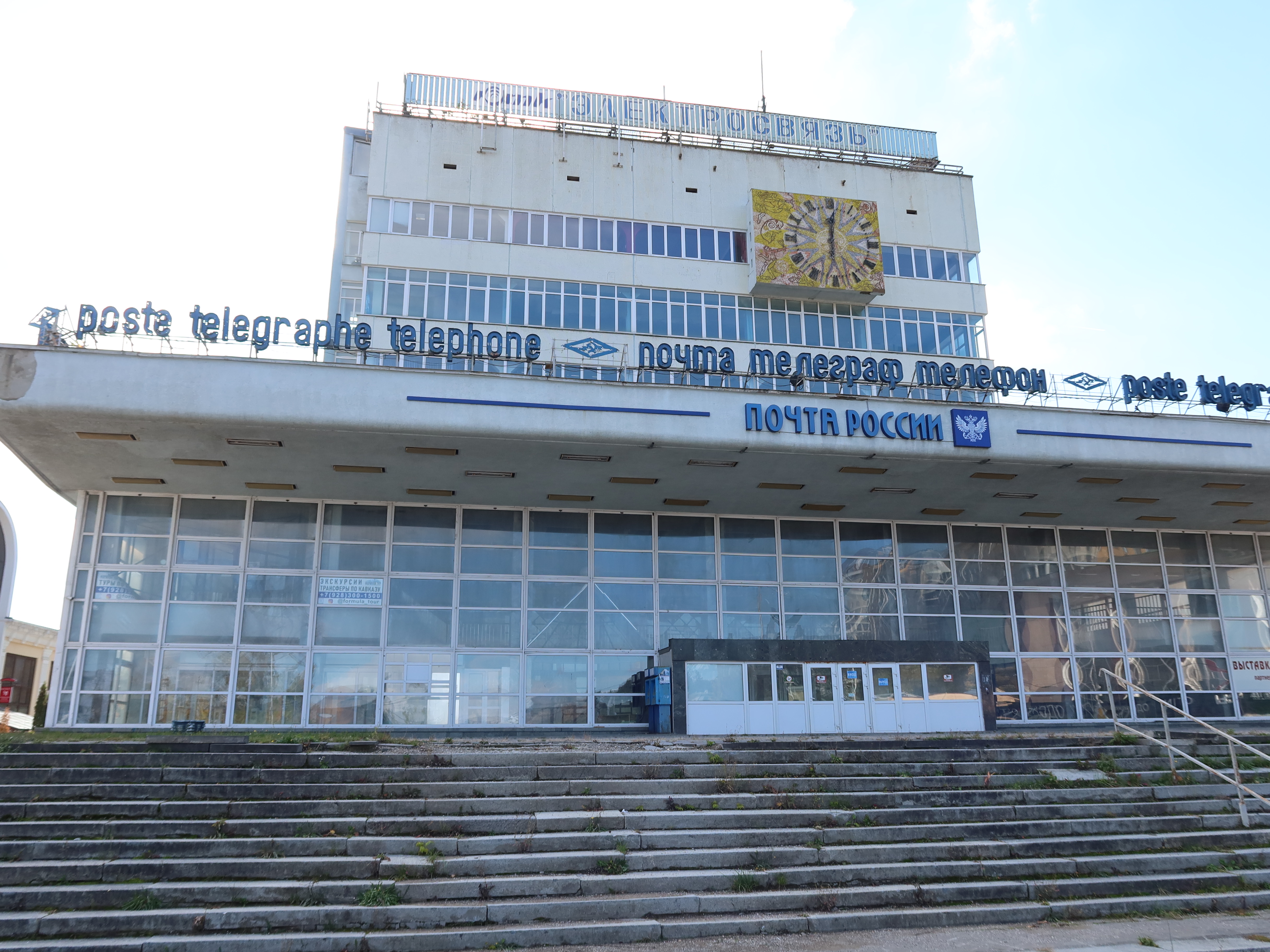 Почта, телеграф, телефон. Старое здание испорчено ролл-ставнями.