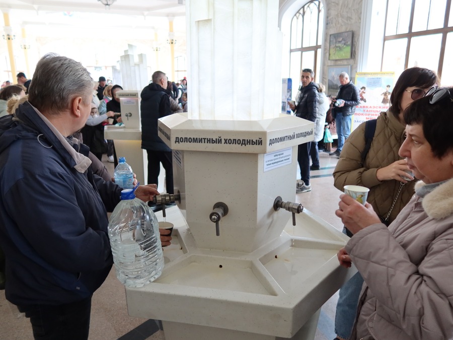 Люди пьют из стаканчиков, набирают целые бутылки.