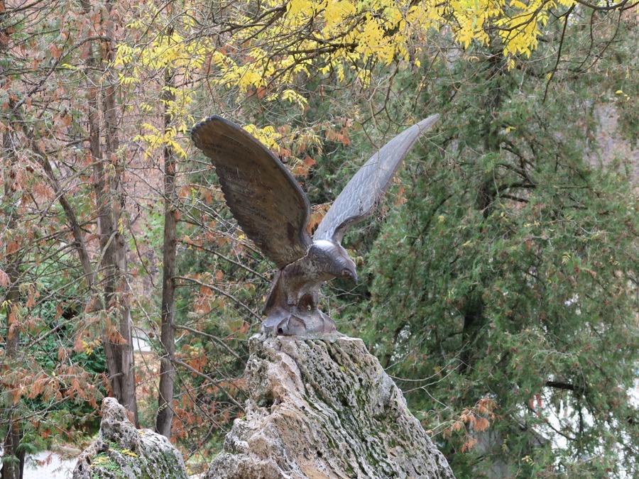 Зачем-то посадили пальмы в холодном климате - наверняка на зиму укутывают. На заднем плане Главные нарзанные ванны - возможно, самый дорогой санаторий Кисловодска.