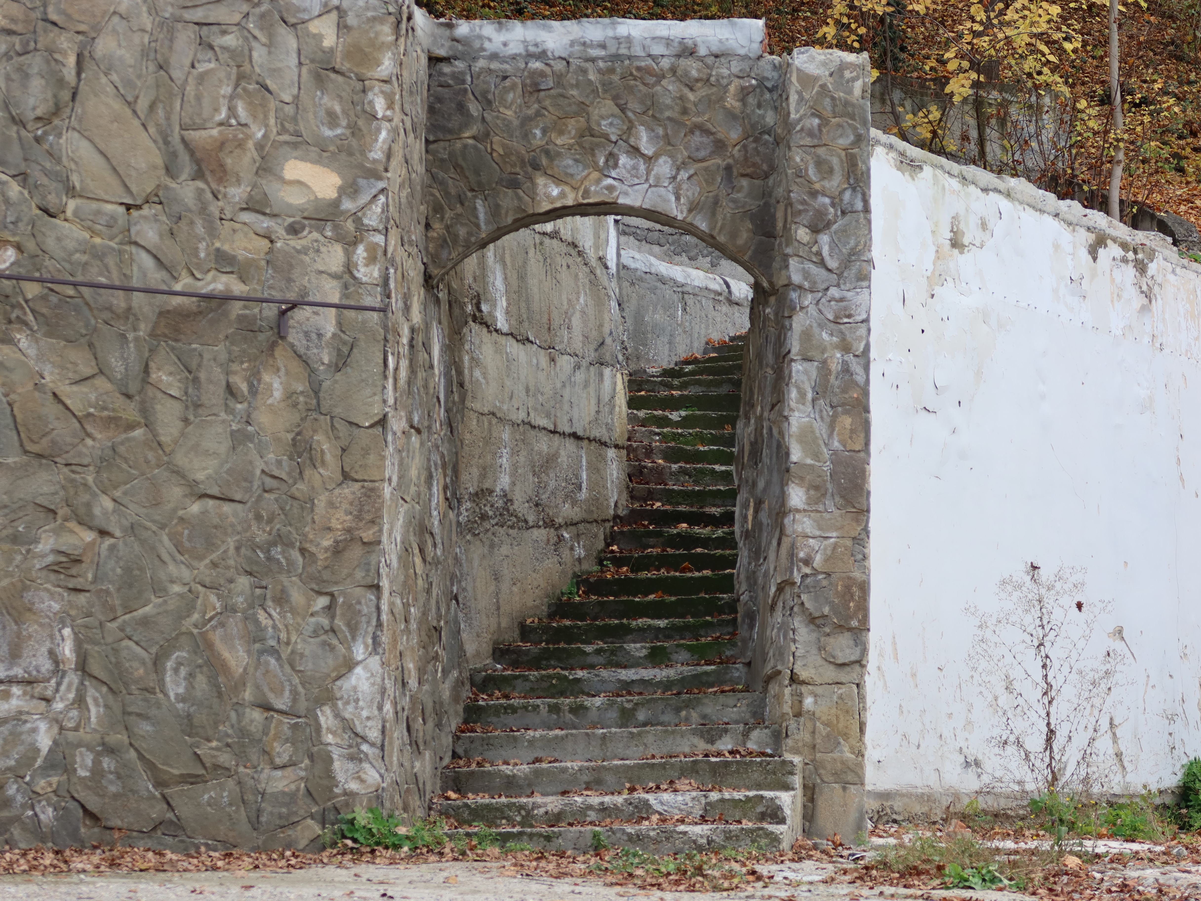 Крутые подъёмы оборудованы перилами. Возможно, зимой тут скользко.
