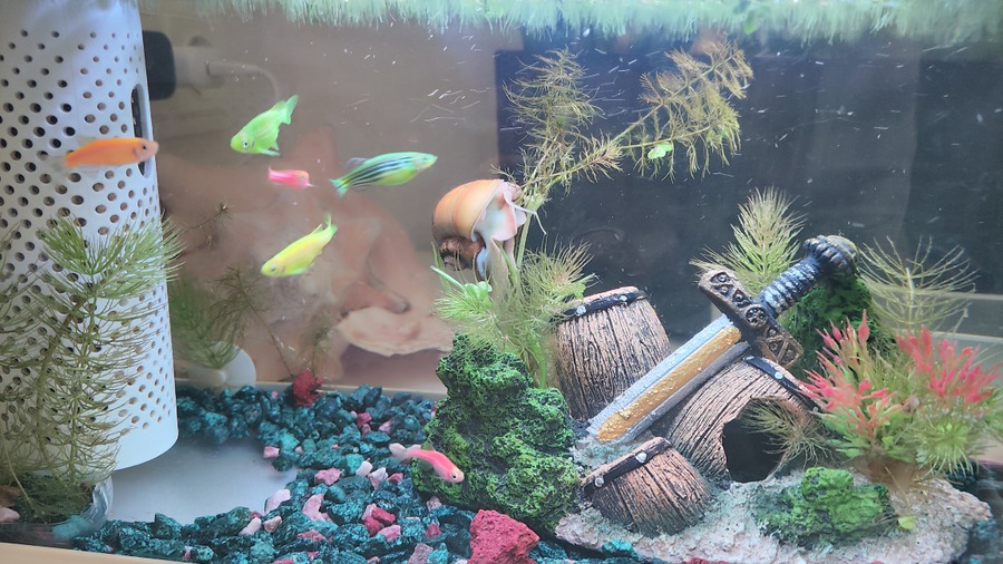 Аквариум, для которого они покупались, небольшой, всего 10 литров, зато со встроенной экосистемой. Но даже эта система не спасла от жертв: из первых пяти данио, в первые две недели погибло две рыбки.