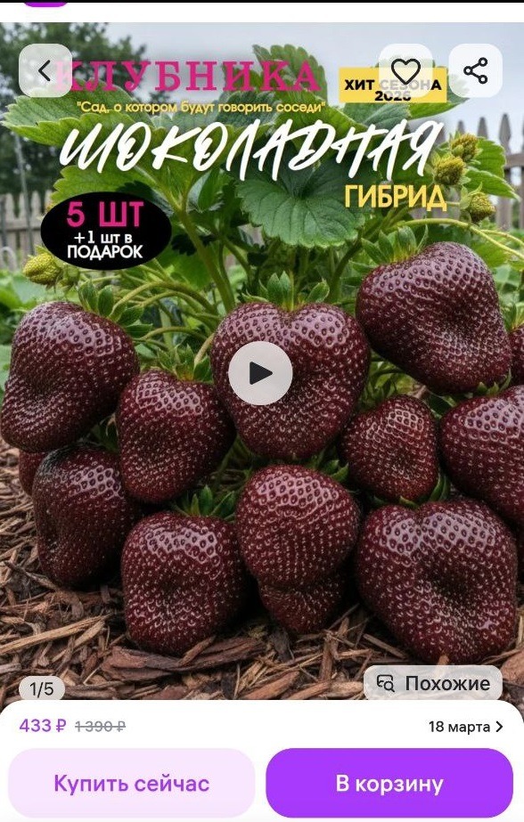 На «Вайлдберриз» есть множество чудесных сортов клубники. Например, черная, размером с два кулака.