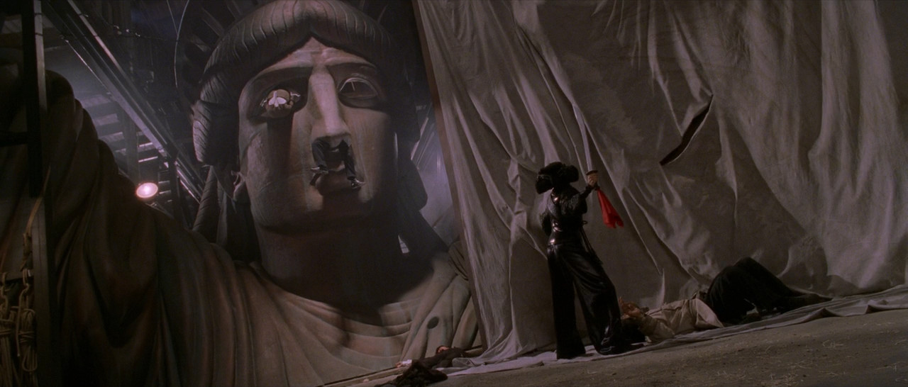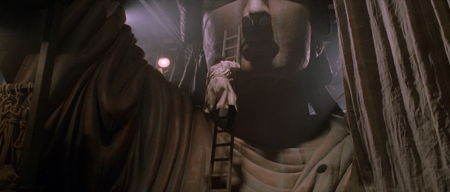 В фильме Вокруг света за 80 дней (2004) имеется интересная сцена сражения возле полусобранной статуи Свободы. Главные герои забегают на склад в доках, где потом сражаются с китайскими бандитами.