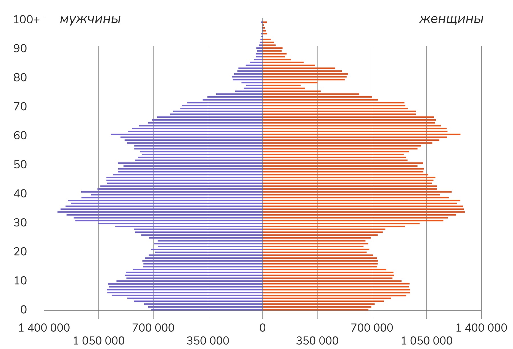Так называемые миллениалы - это самая экономически активная и самая многочисленная группа людей в России. Это те кто родились с начала 80-х и до середины 90-х. Их больше всего сейчас. Вот данные на 2022 год, просто сдвиньте визуально вверх график, т.е. чуть выше на 4 года: